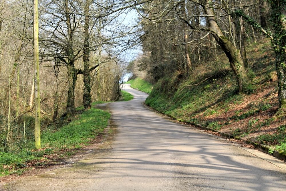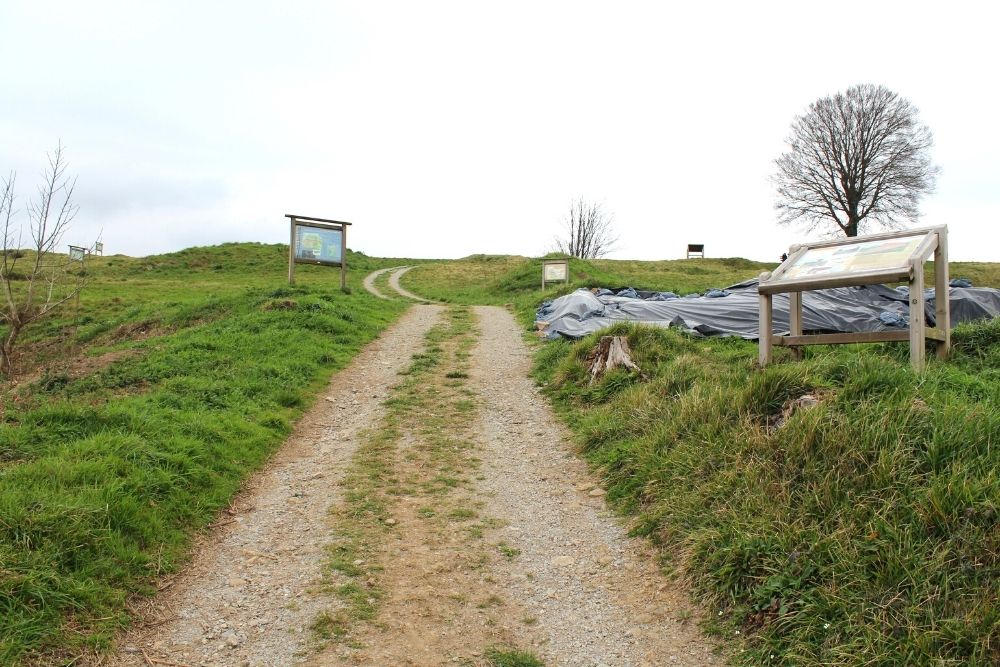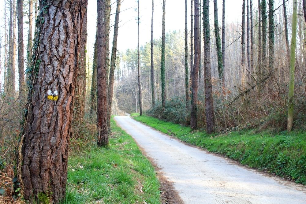 Igoera honen amaieran ezkerrera doan bide bat topatuko dugu, baina guk zuzen jarraitu beharko dugu. 700 metro inguru egin ondoren, eskuinetara dagoen aldapa bat topatuko dugu, eta Axibar baserrira joateko bidea bereizten duen aldapa hartu beharko dugu.