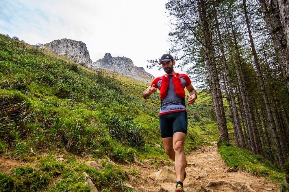 Au fur et à mesure que la présence du Txindoki s'accentue, les hauts pâturages d'Aralar se dessinent et nous apprécions sa morphologie sinueuse. Crêtes de bergers entourées de frênes et d'enclos. Nous finissons par descendre le long de sentiers traversant des forêts de pins et de chênes.