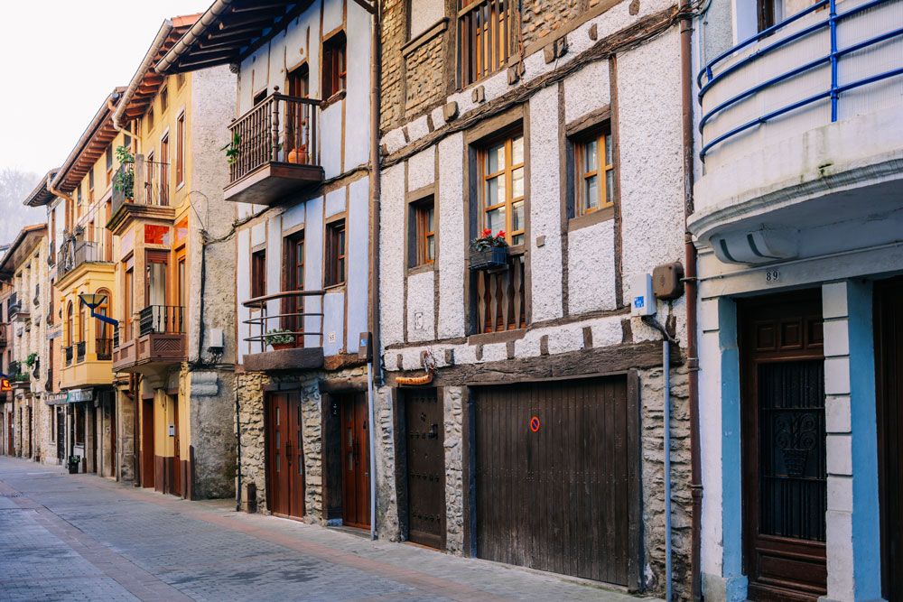 Enfrente de la parroquia, en la calle principal del pueblo, la calle San Juan, se conservan varios edificios que dan buena muestra de la arquitectura popular vasca.