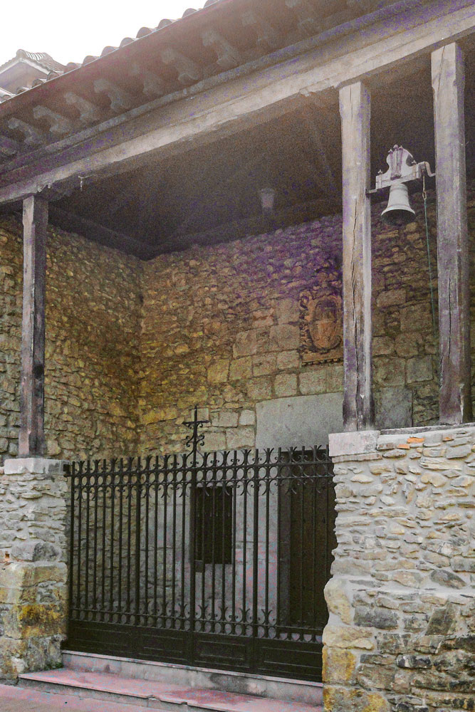 Una sencilla ermita, construida en mampostería y sillarejo, y protegida por un verjado. Destaca el escudo situado sobre la puerta así como una pequeña campana. Se dice que tiene relación con el Camino de Santiago.