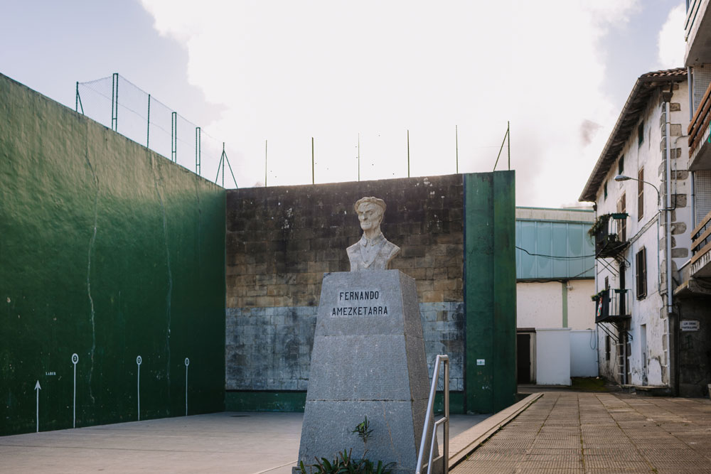La cultura de la pelota en Amezketa está muy arraigada, ha sido cuna de ilustres pelotaris, como Jokin Altuna, campeón en varias ocasiones en diferentes modalidades. Las paredes de este frontón al aire libre, situado en la plaza bajo la atenta mirada del busto de Fernando Amezketarra, han servido de campo de entrenamiento. Al lado, se sitúan el frontón Larrunarri y el Ayuntamiento.