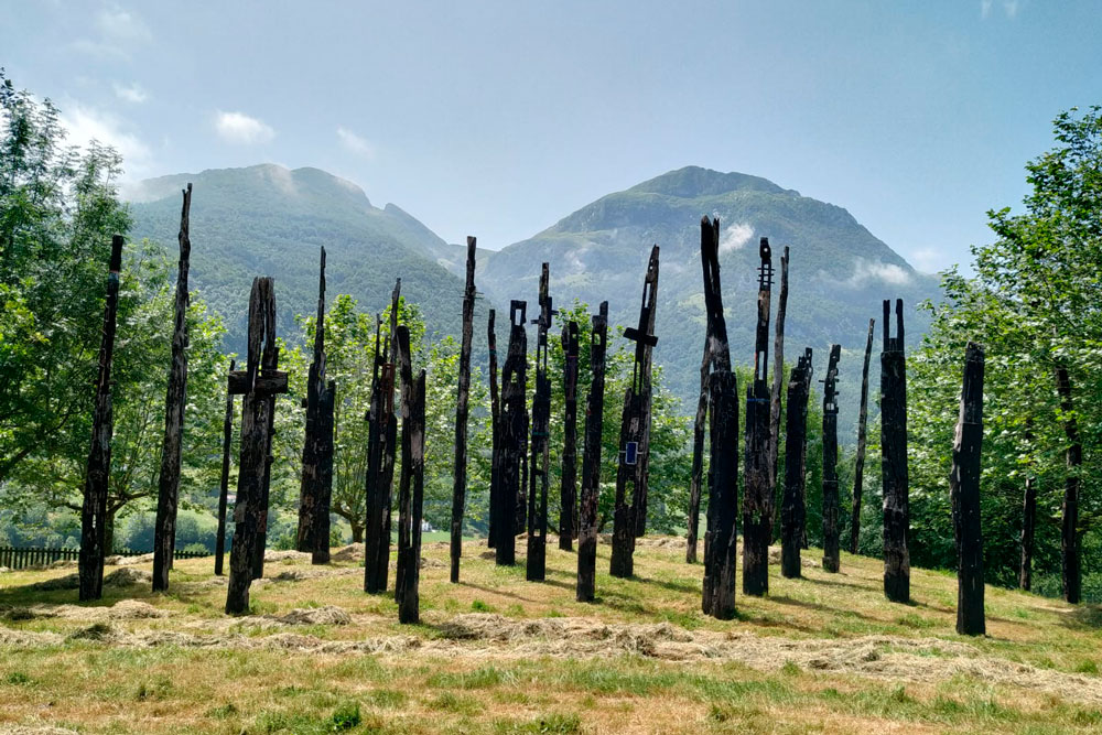 Hermosa ermita construida entre los siglos XIII y XV en lo alto de Amezketa, al lado de un merendero con mesas y parrillas, donde disfrutar de la tranquilidad mirando de frente a Txindoki. Una escultura de Guillermo Olmo, compuesta por 60 columnas de caseríos de la zona, simboliza un cementerio de árboles para recordar cómo Aralar fue la fuente de material para abastecer a la comarca.