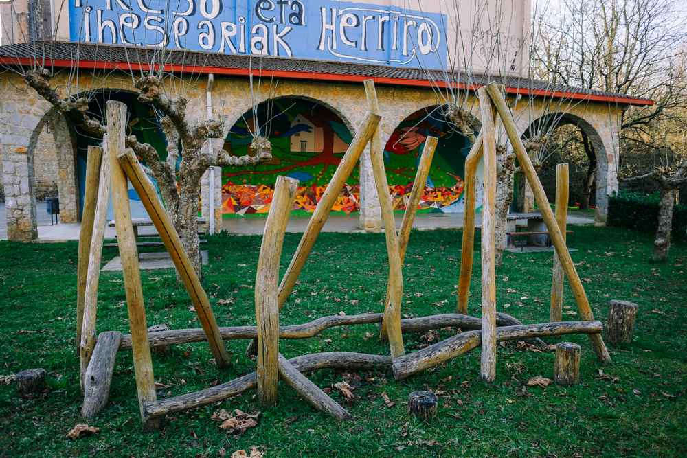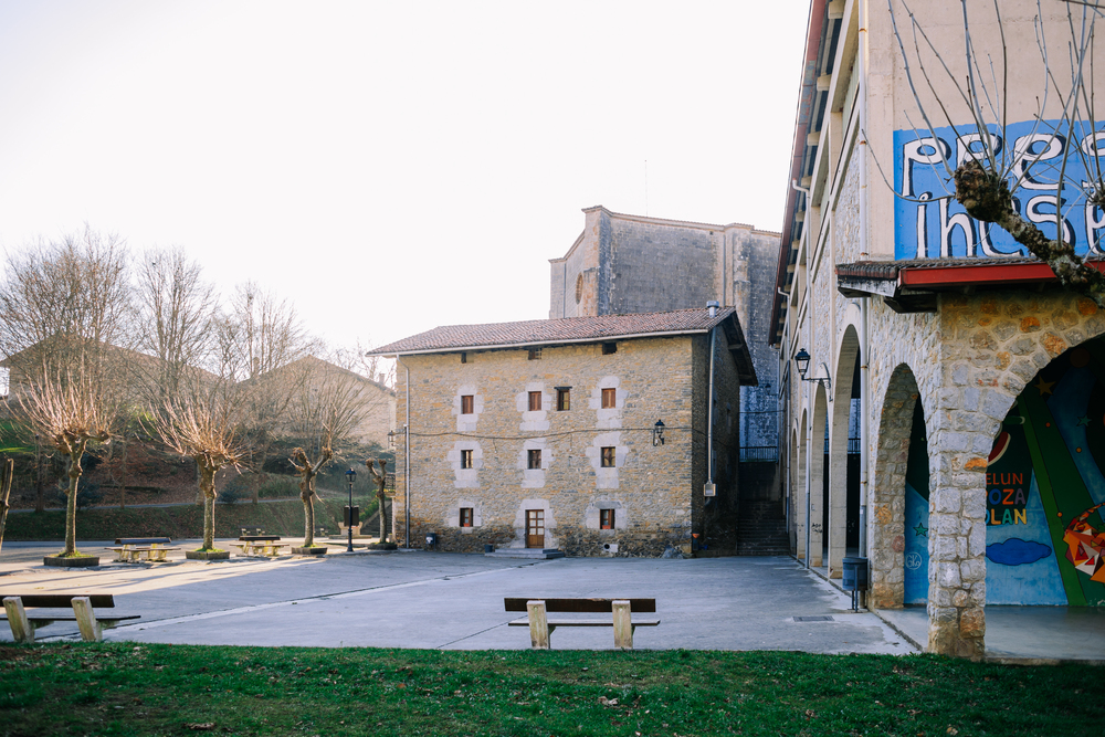 Es el punto de encuentro de la villa, con un frontón cubierto y un parque infantil que invitan a pasar un buen rato. A su alrededor hay varias casonas interesantes: Seroetxe, Erretore Etxea u Osingone, entre otros.