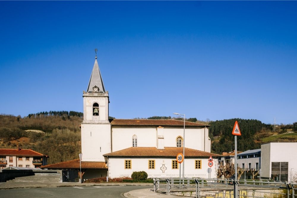 Situada en el centro del municipio, data del siglo XVI, aunque ha sido remodelada varias veces. Es de estilo gótico tardío, tiene también particularidades del gótico vasco. Tiene un precioso pórtico de madera.