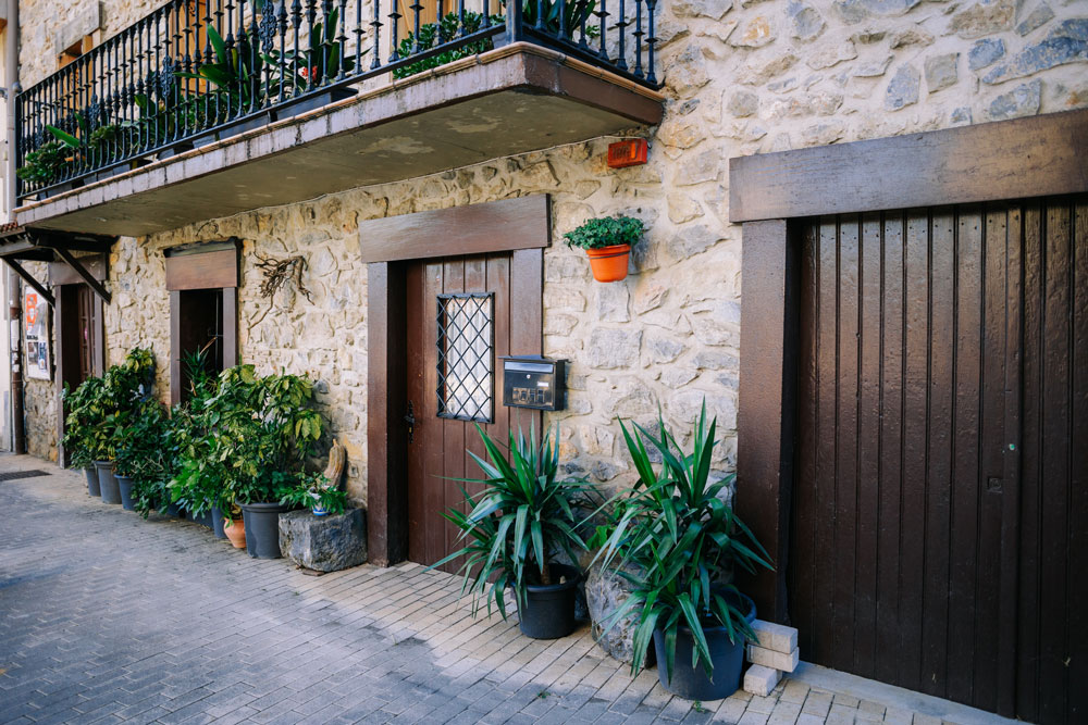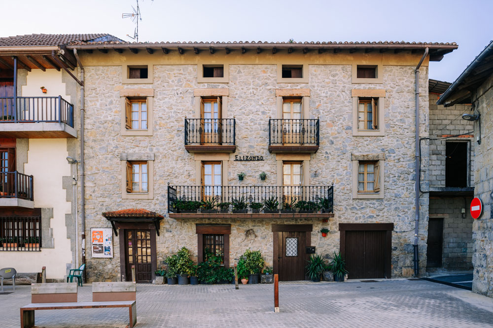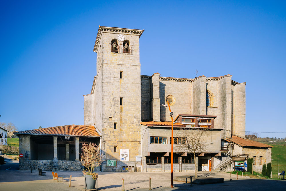 Presidida por la parroquia San Millán, tiene a su alrededor varios majestuosos caseríos: la Casa Cural o Eliz Gain, Etxeberri, Iriarte o Portxeta. Destaca también la torre renacentista San Millán o Donemiliaga, del año 1470, que conserva elementos medievales en la fachada.