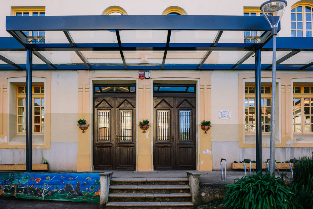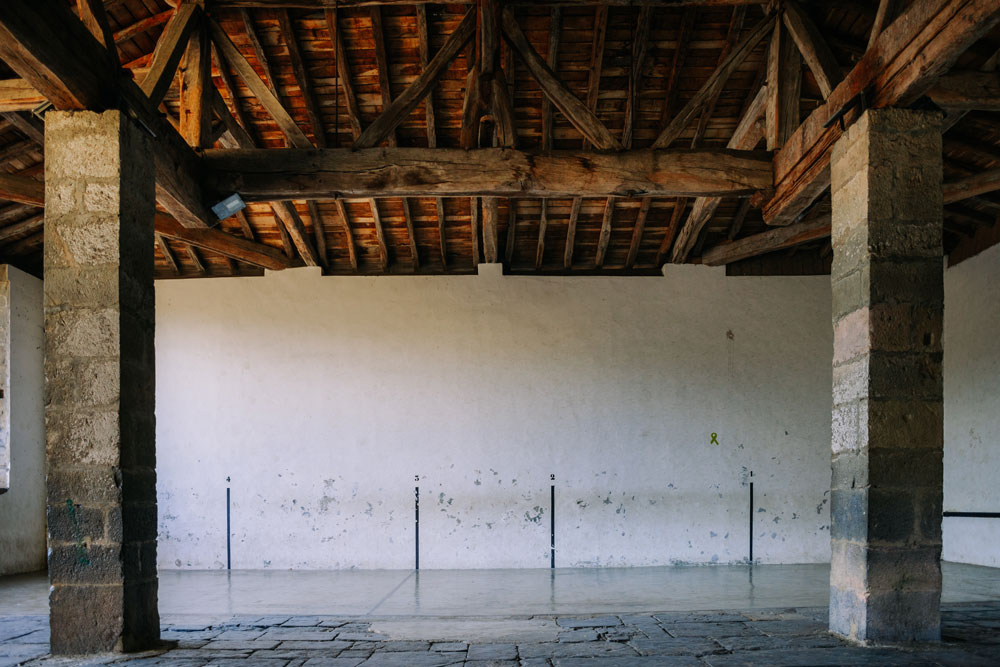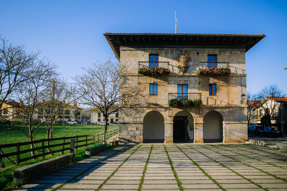 Un elegante edificio simétrico. Construido en mampostería en el siglo XVIII, es de planta cuadrada, con un hermoso pórtico de tres arcos y un gran escudo en su fachada. La plaza adoquinada de enfrente era antaño la plaza donde se realizaban los campeonatos de arrastre de piedra.