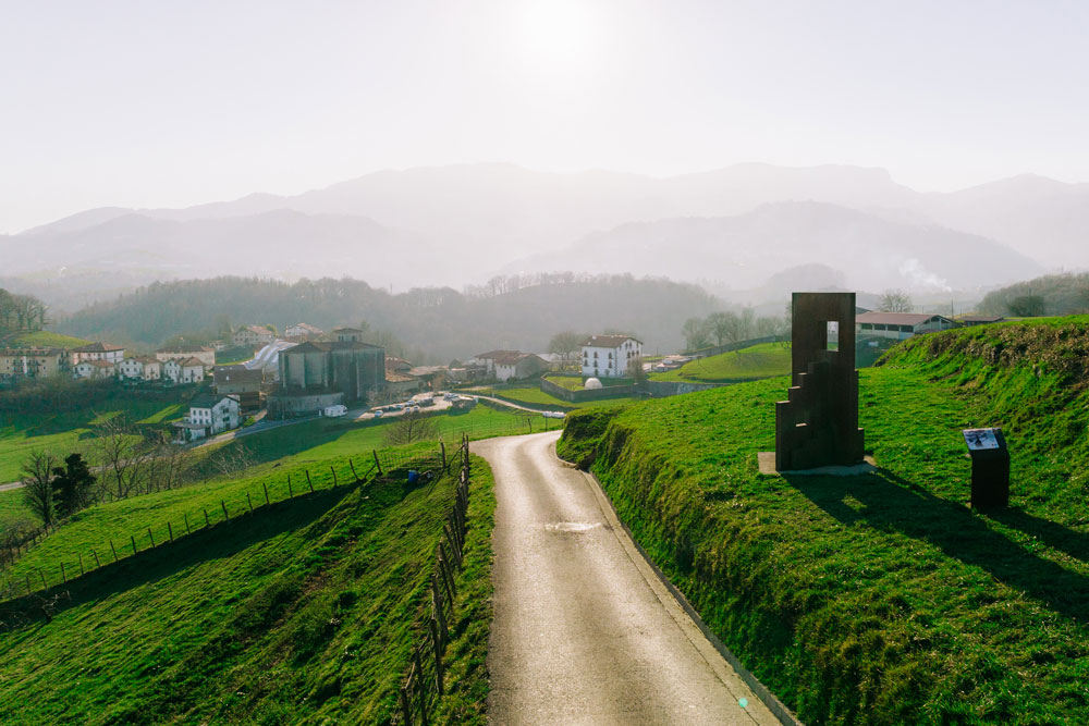 La escultura de acero y dos metros de altura ‘Baserriko Argia’ (Luz del caserío), obra del artista Juan Gorriti, pone en valor el papel de la mujer en la vida rural. Situado en una colina, desde allí se aprecia una hermosa vista de Zizurkil y el valle de Aiztondo.