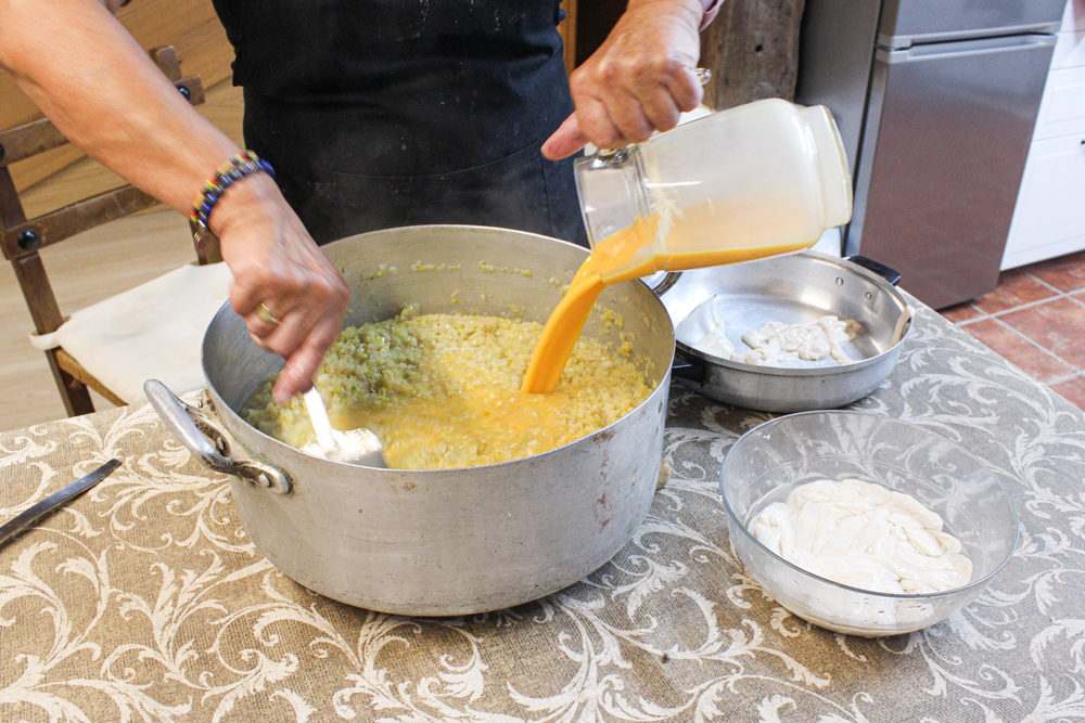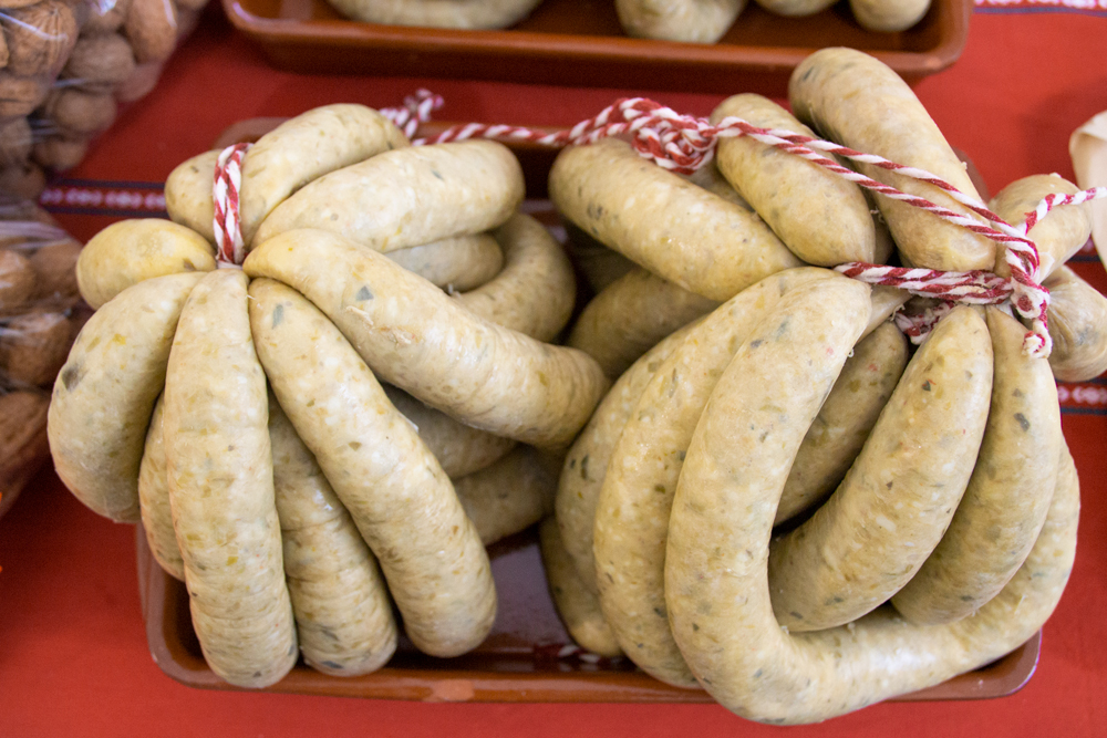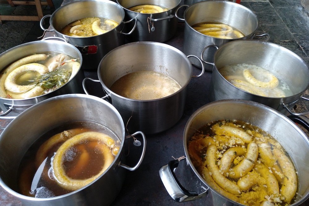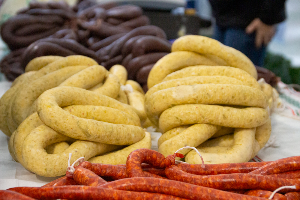 Hay dos tipos de mondejus –blancos (aunque su color sea amarillento y negro)–. La receta original del mondeju blanco incluye verduras –puerro y cebolla–, además de tripas y grasa de oveja latxa.