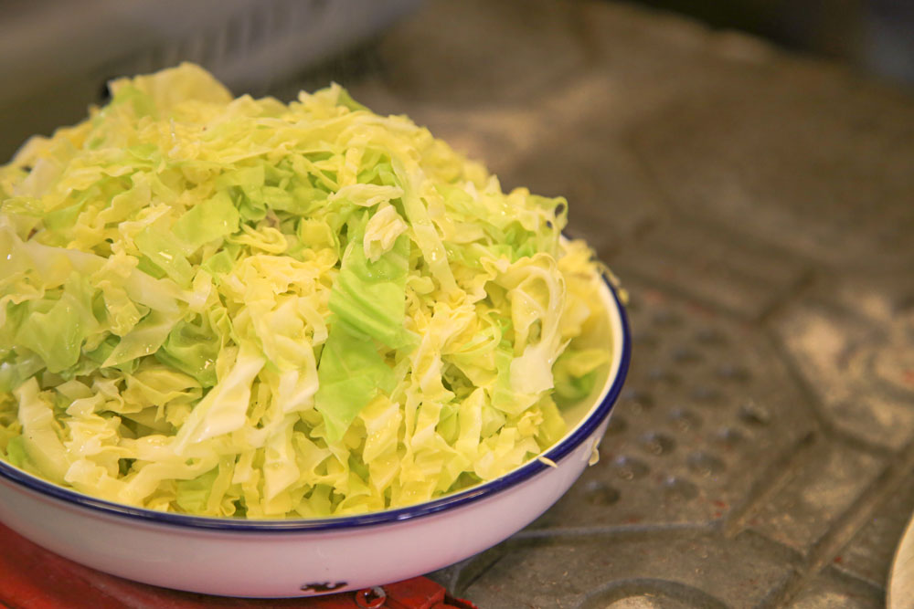 Se sirven unas finas hojas troceadas de berza con un sofrito, y se comen al gusto: tanto separadas, como mezclándolas con las alubias. Por lo general se cuece por poco tiempo, para que no pierda color ni sabor.