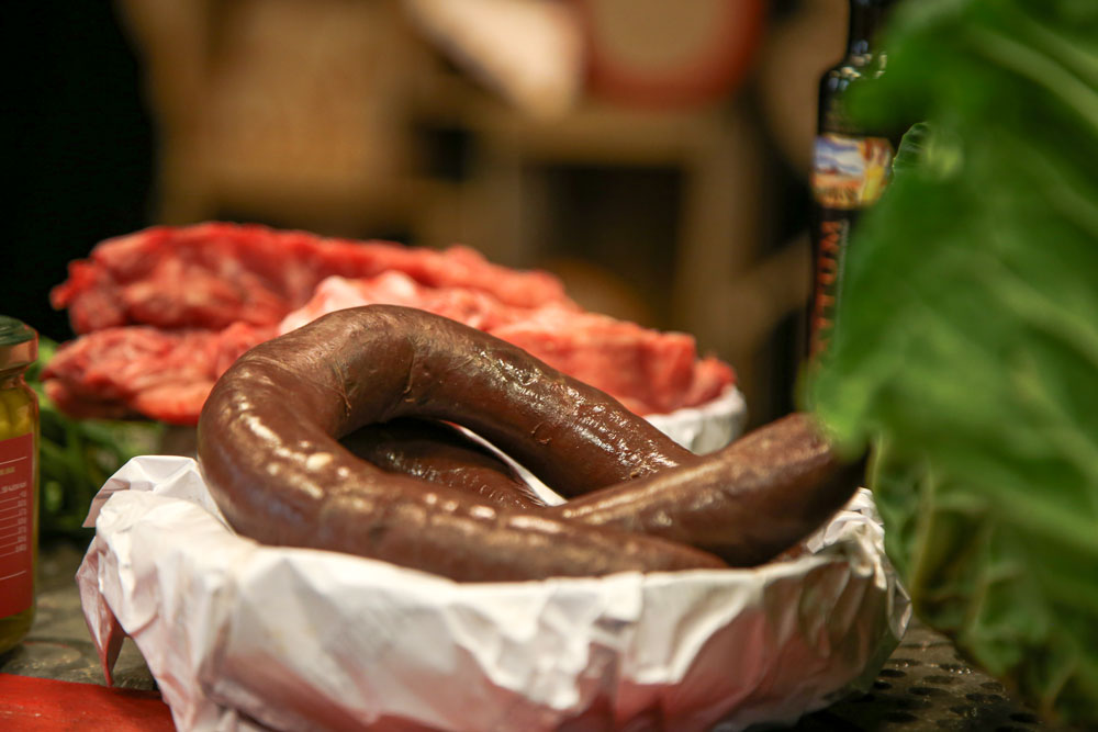 La morcilla se compone de verduras, como la cebolla o el puerro. Hay quien también sirve las alubias con chorizo y mondeju, una especie de morcilla blanca elaborada con grasa de oveja, huevo, puerros, pimienta y sal.