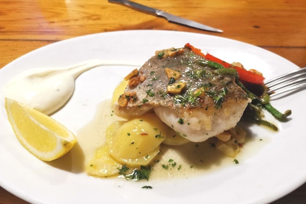 En el restaurante encontramos una gran variedad de carnes (chuletón, entrecot, costilla,…), pescados de muy diversa índole: (merluza, rape, lubina, bacalao,…) y postres caseros (arroz con leche, bizcochos, flanes,…).