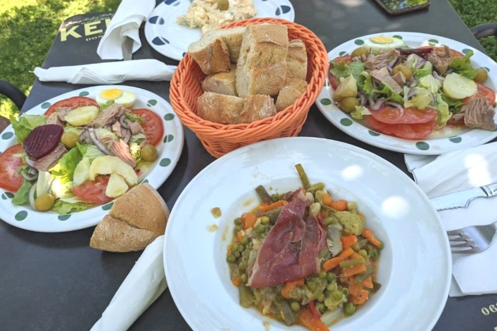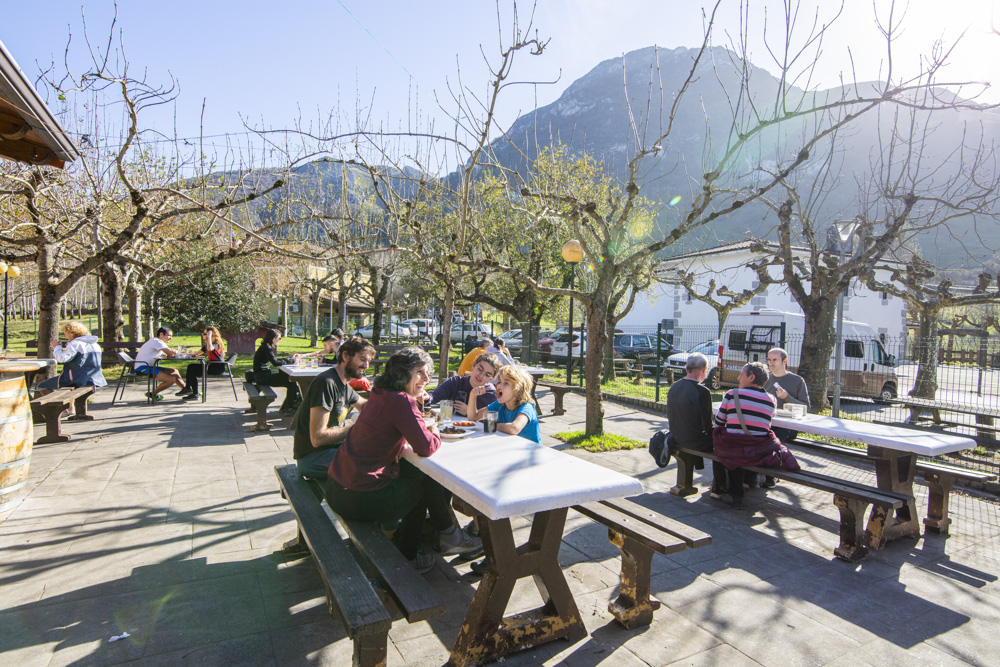 Comida tradicional vasca, en Larraitz. Una dela entradas más conocidas del parque natural de Aralar.