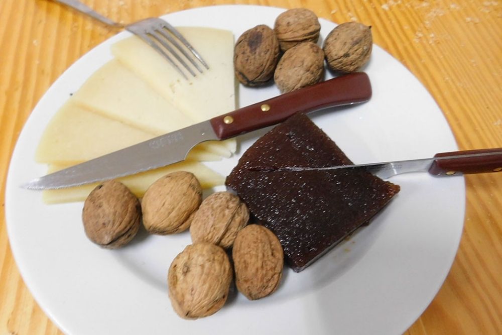 En la sidrería Sarasola de Asteasu ofrecen menú de sidrería tradicional: Tortilla de bacalao, bacalao con pimientos, chuletón y queso, membrillos y nueces.